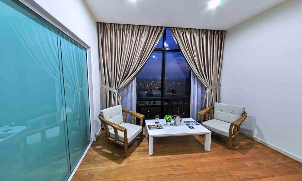 床から天井までの大きなガラス窓を備えており、トロピカルな緑に囲まれた自然景観を楽しむことができます。屋上庭園やルーフテラス付きのタイプもあります。