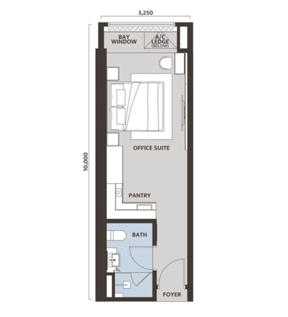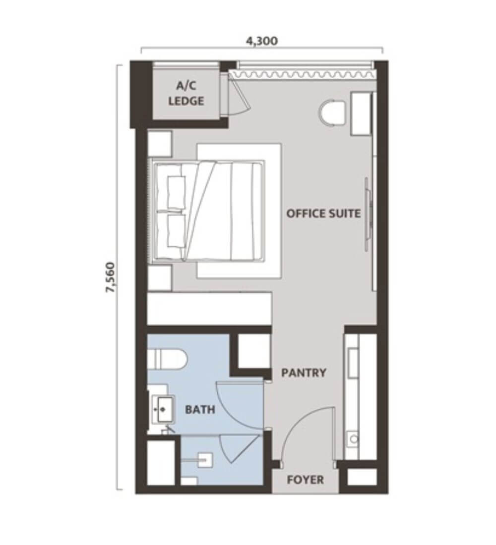 低~中層部にはコンパクトなオフィススイート、上層部には2ベットルームを主としたレジデンシャルユニットを配置しています。
