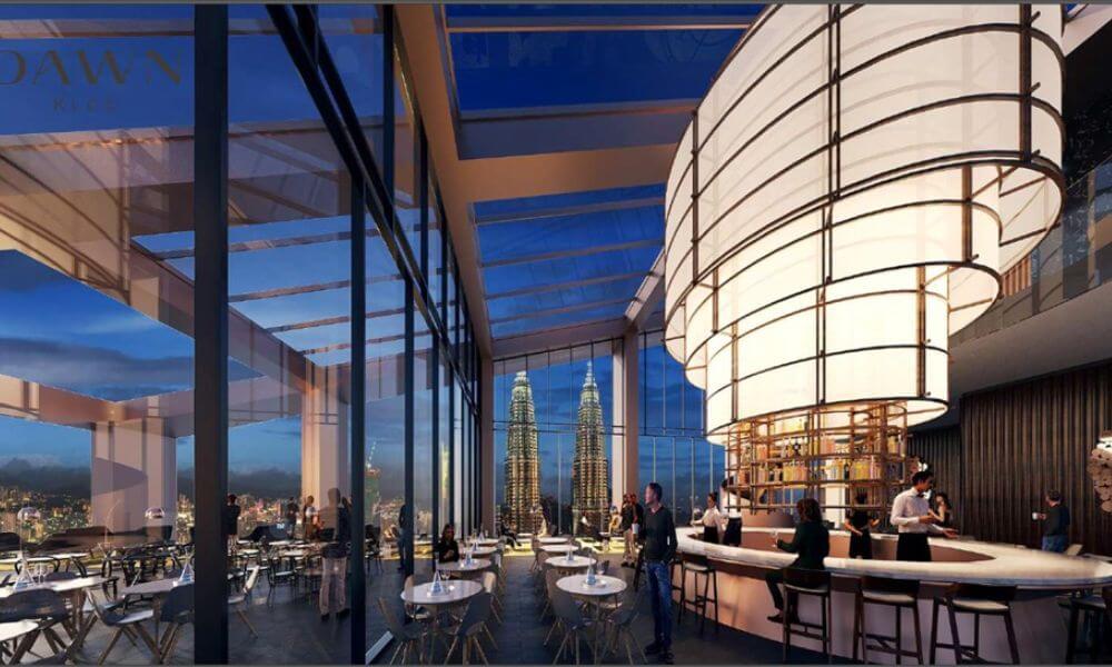 ドーンKLCCは、地上69階建て(高さ261.9m)を誇るクアラルンプール都心でも有数の超高層ランドマークです。都市景観に向けて斜めに切り取られた大開口が特徴的な外観となります。