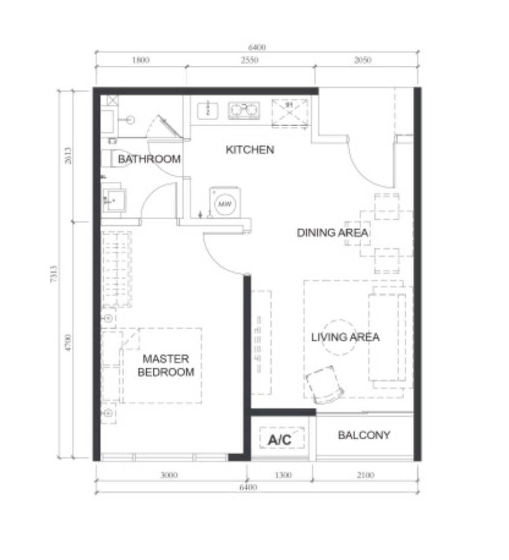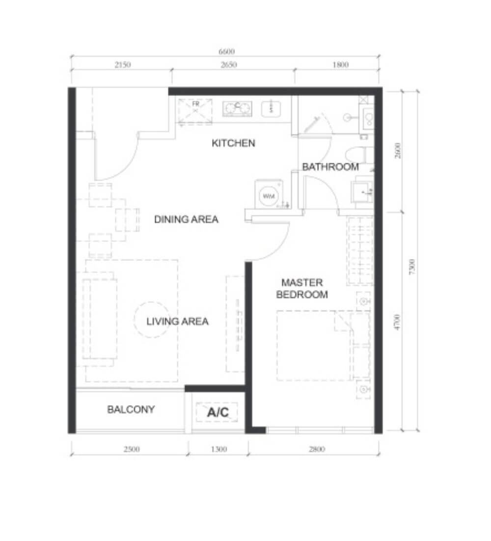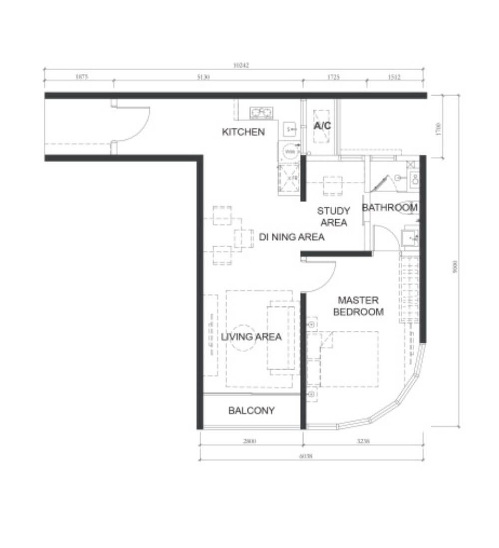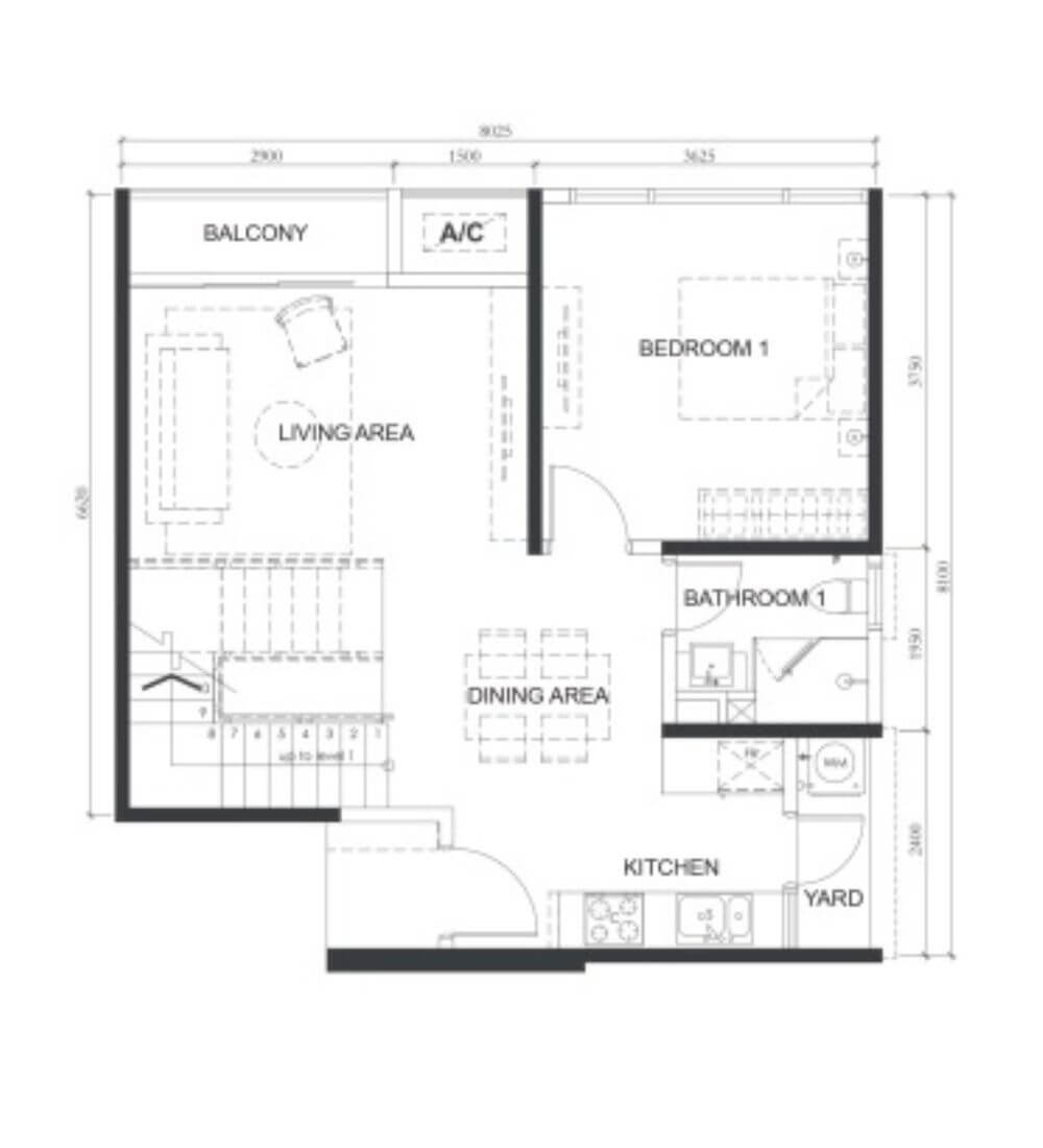| A1 | 1 | 517sq.ft (48m²) | 1 |