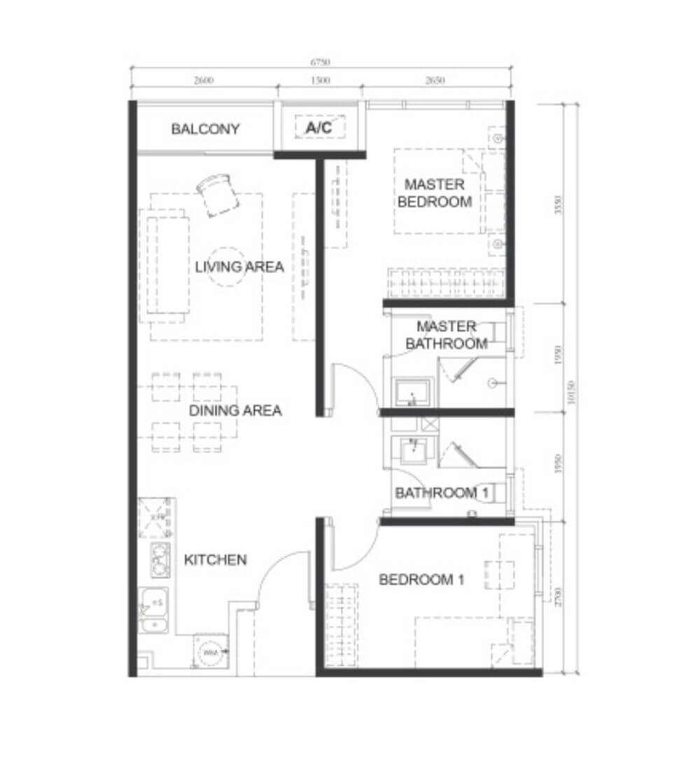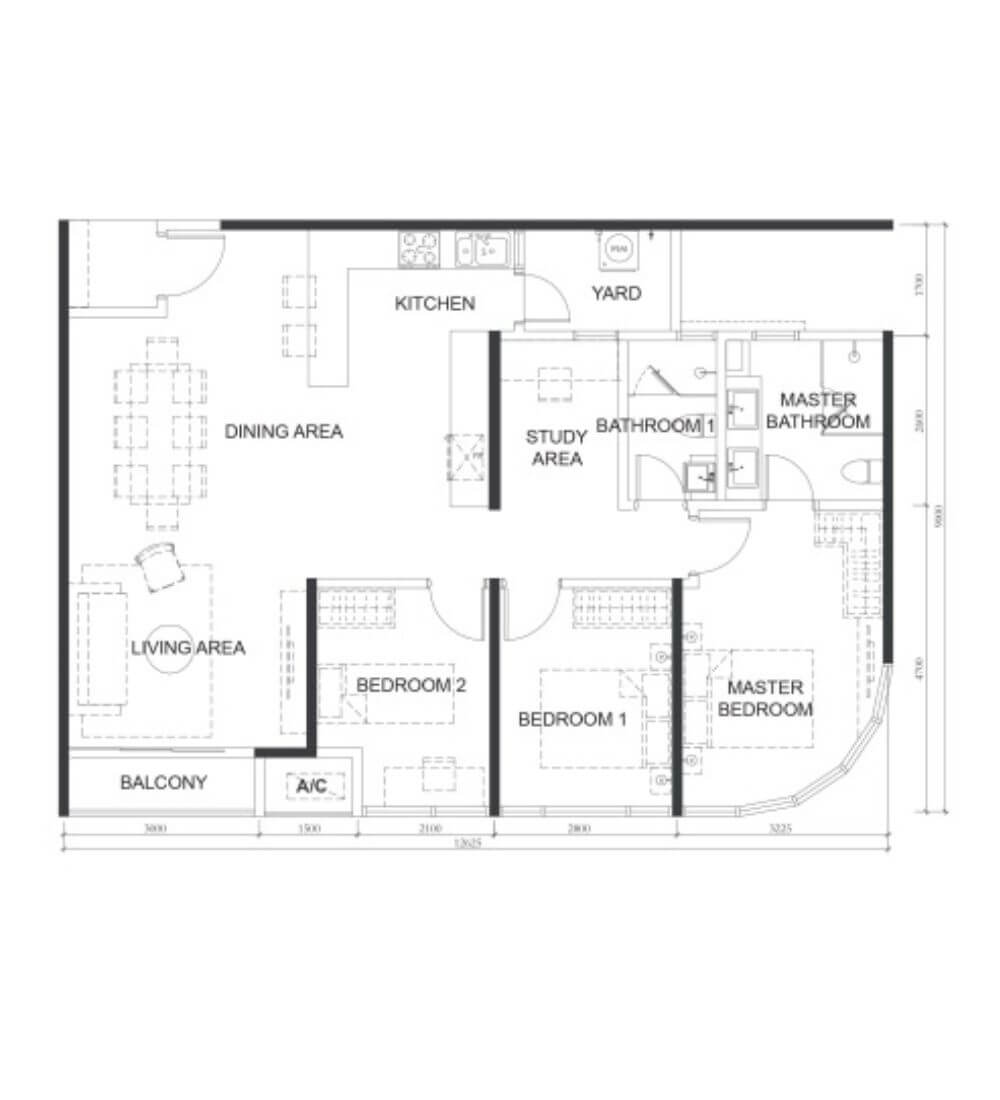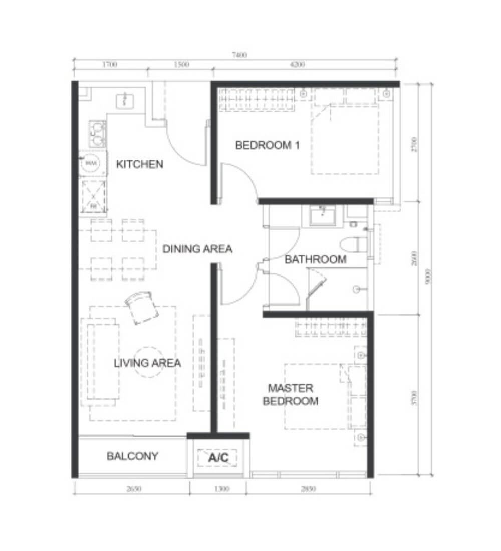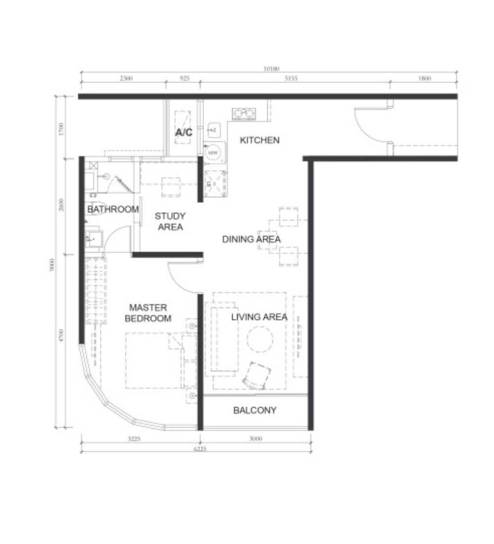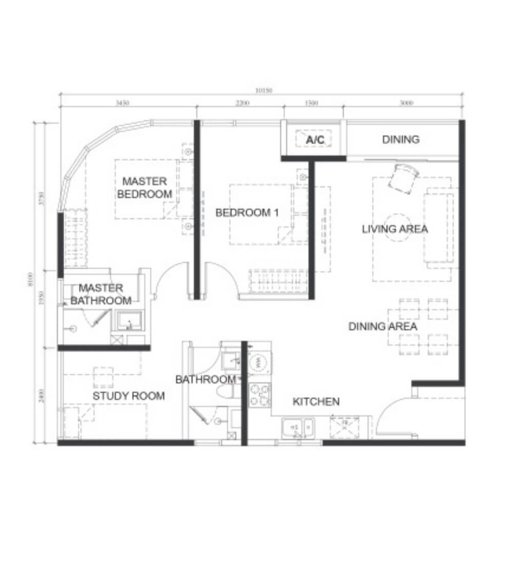 | A1 | 1 | 517sq.ft (48m²) | 1 |