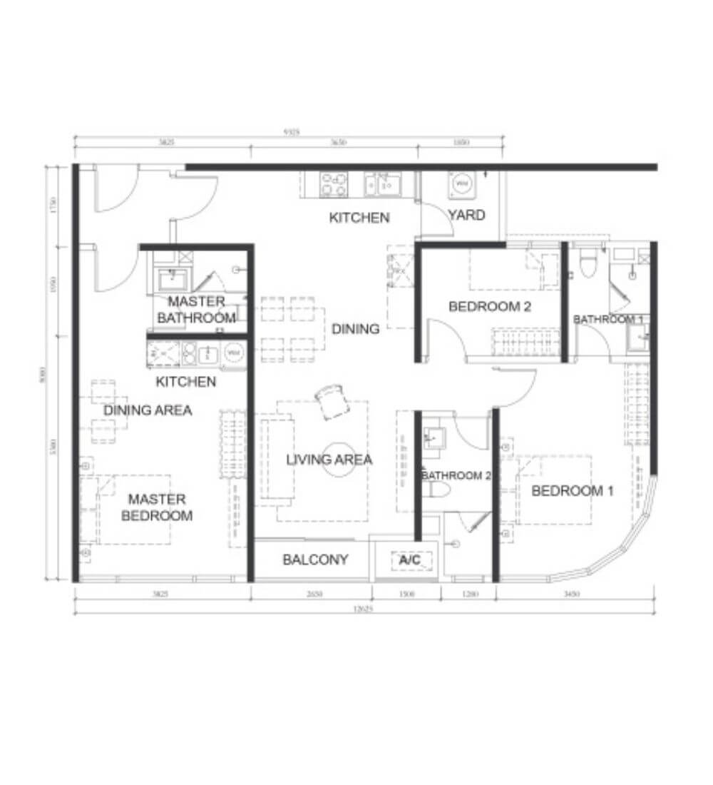 | H | 3 | 1,152ssq.ft (107m²) | 2 |