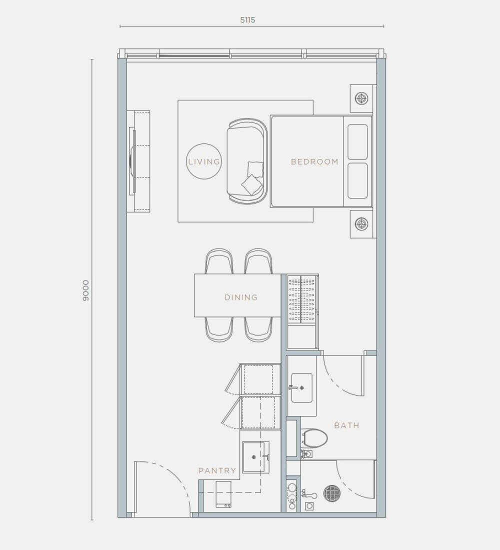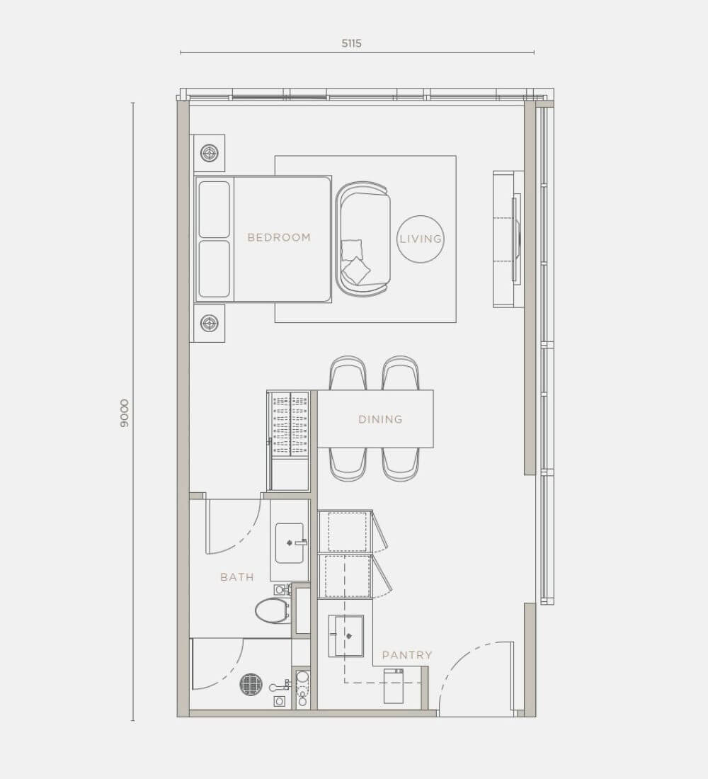 | A2 | スタジオ | 495sq.ft (45.99m²) | 1 |