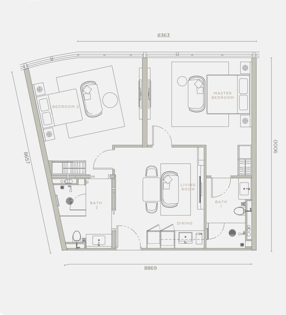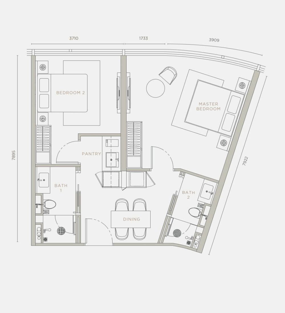 | C3 | 2 | 923sq.ft (85.75m²) | 1 |