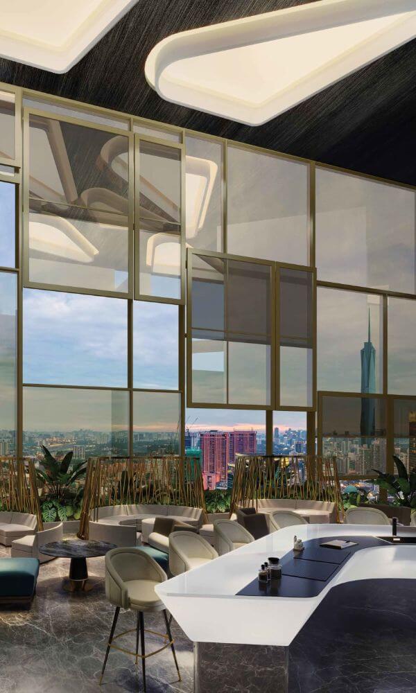 プール・ジムなどを備えた共用設備フロアや、レジデンス内にスカイラウンジやバー、レストランを備えた高層階フロアを設け、360度に広がるクアラルンプールの眺望を楽しむこともできます。