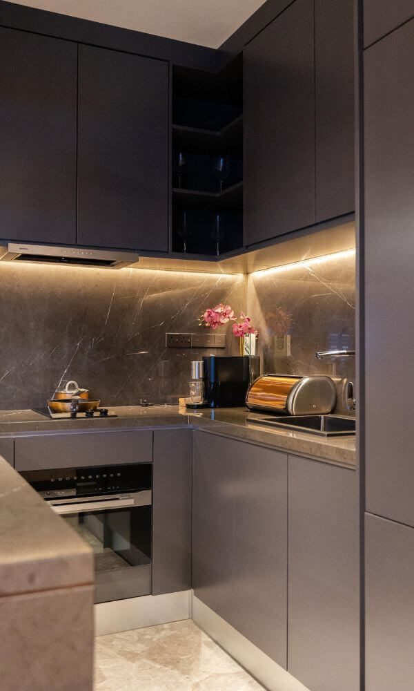 また、自動化駐車システム(Automated Concierge Parking)や最新のセキュリティ設備、プライベート貸金庫、さらに各住戸内のキッチンや水回り設備などに高品質なヨーロッパ製ブランドが使われている点も特徴です。