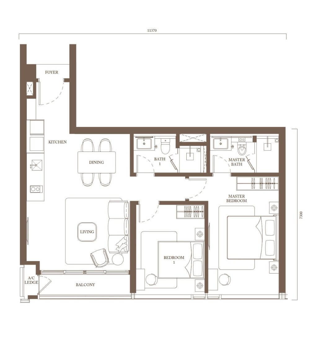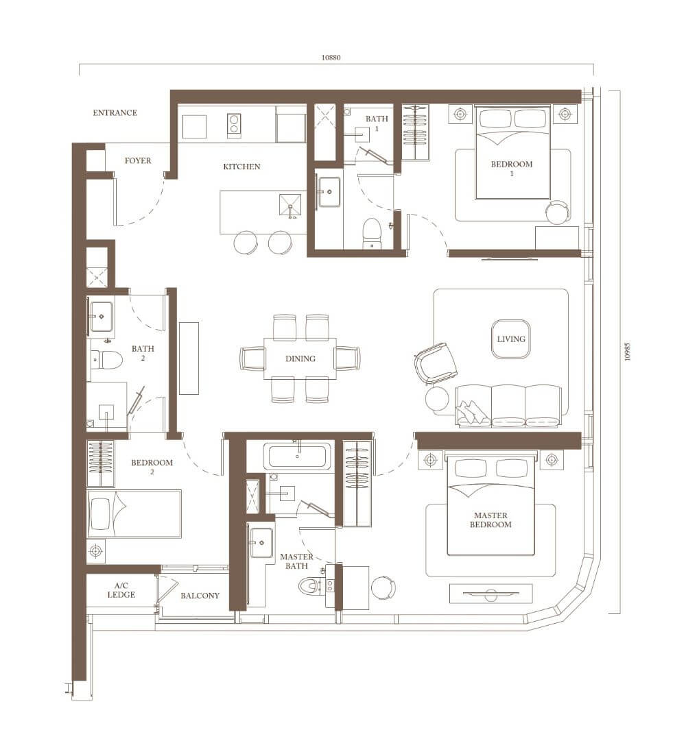 | C2 | 2 + 1(スタディエリア) | 978sq.ft (90.9m²) | 1 |