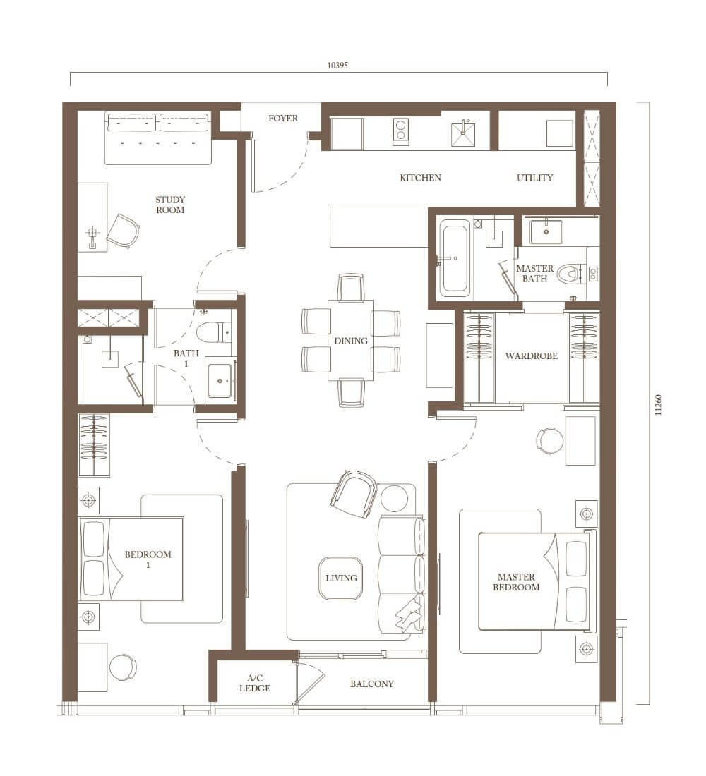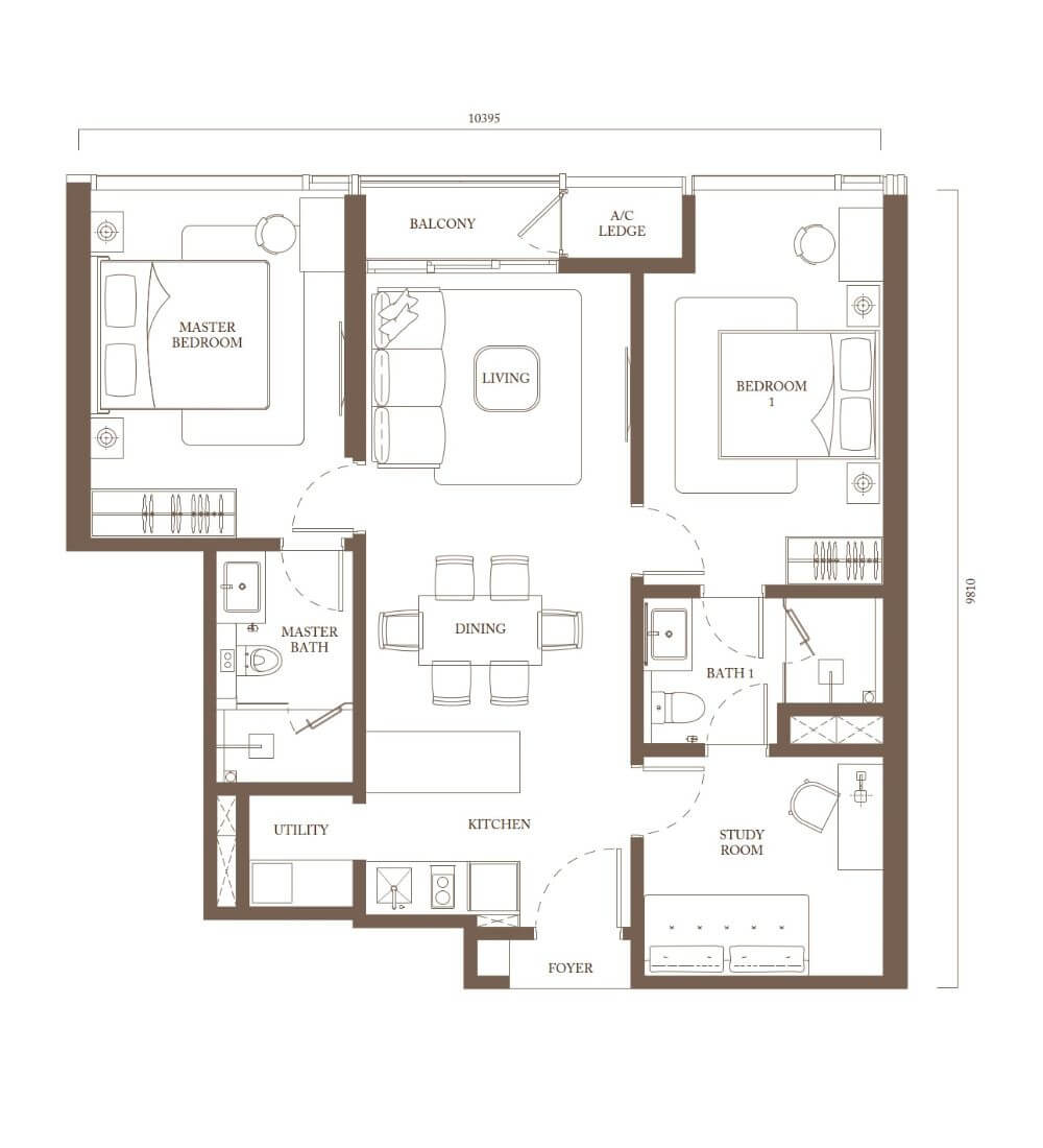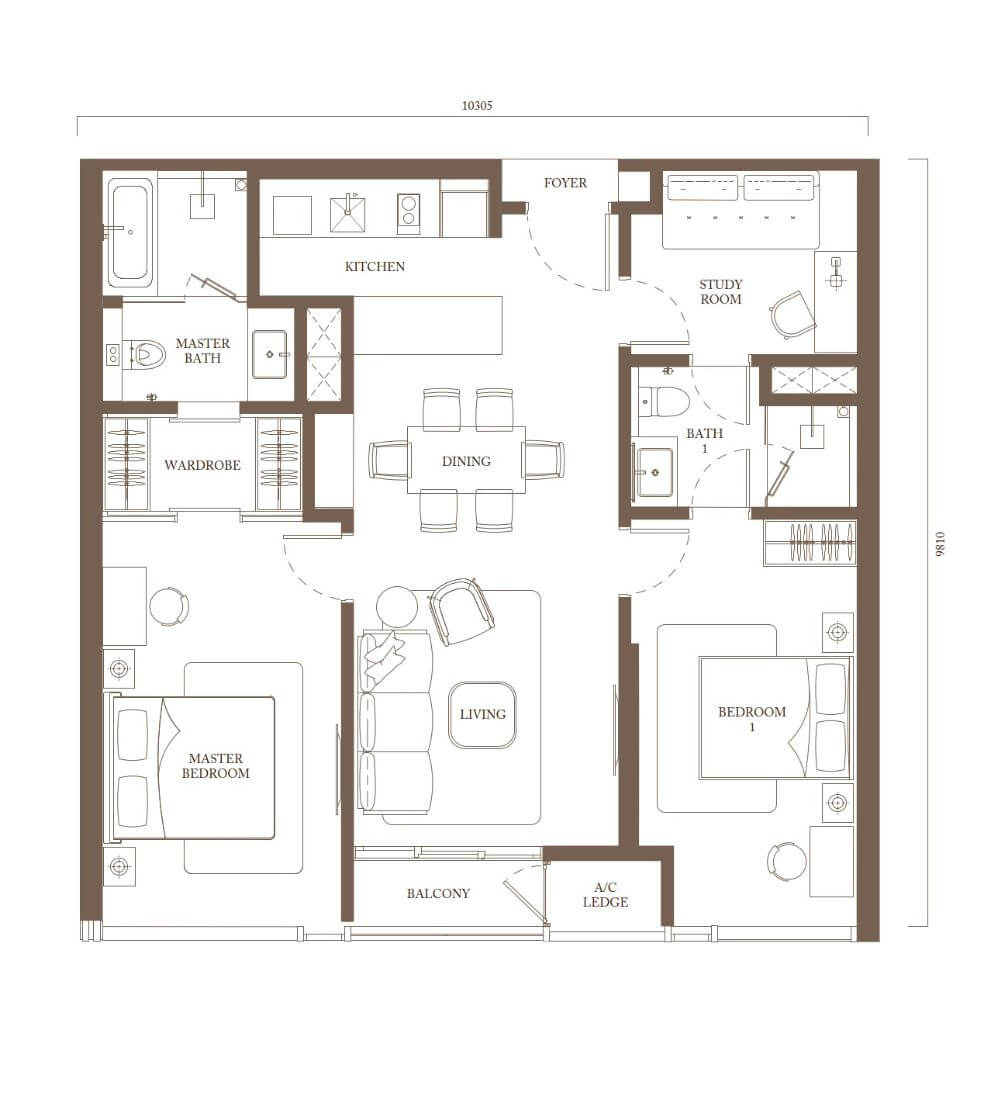 | C3 | 2 + 1(スタディエリア) | 1,100sq.ft (102.2m²) | 1 |