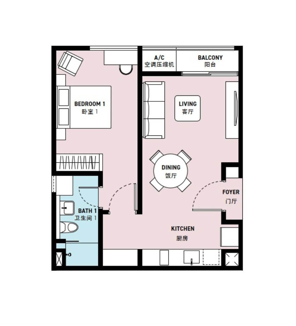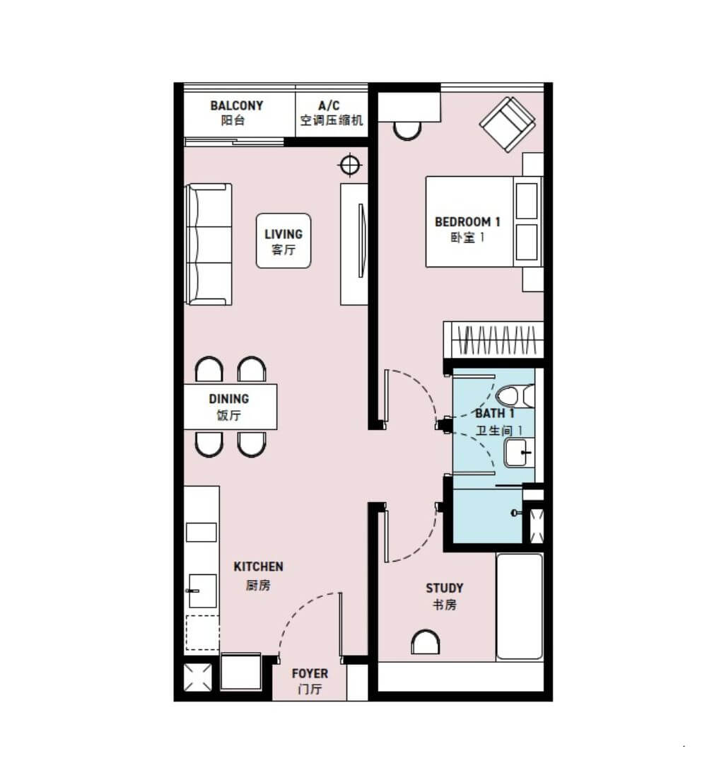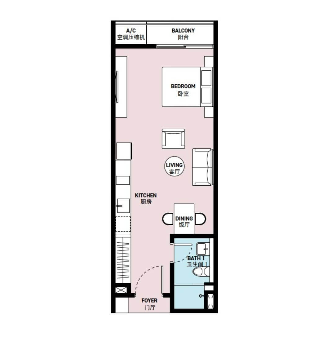 | C | 1 + 1(スタディエリア) | 657sq.ft (61m²) | 0-1 |