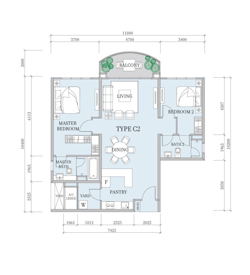 C2 | 2 | 1,167sqf(108.42㎡) | 1 |