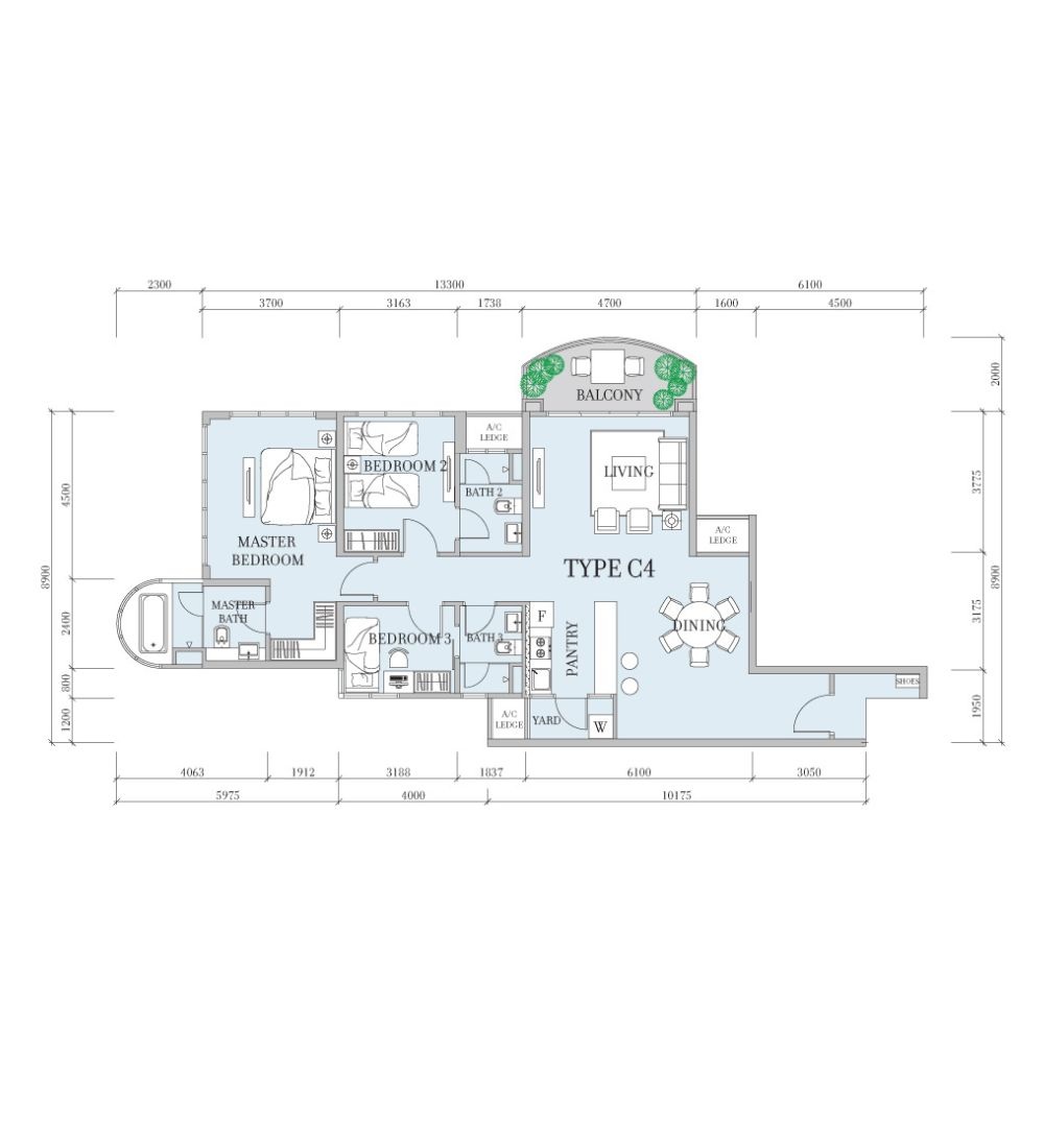 C4 | 3 | 1,380sqf(128.21㎡) | 2 |